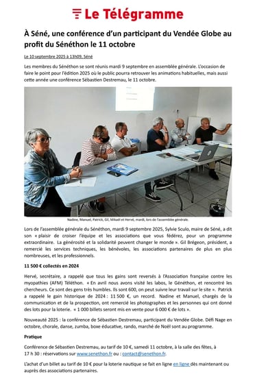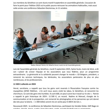 L'association Sénéthon a tenu son assemblée générale le mardi 10 septembre 2024.